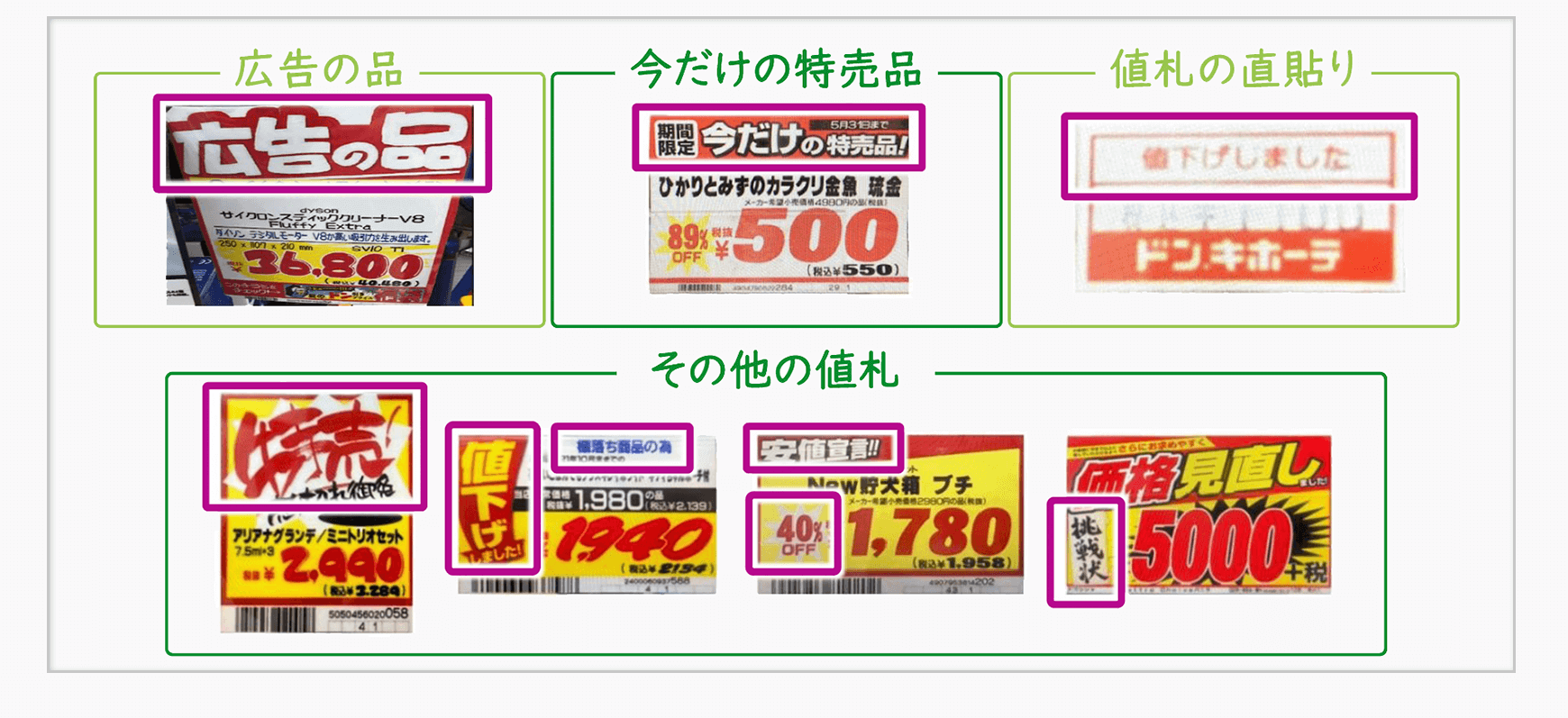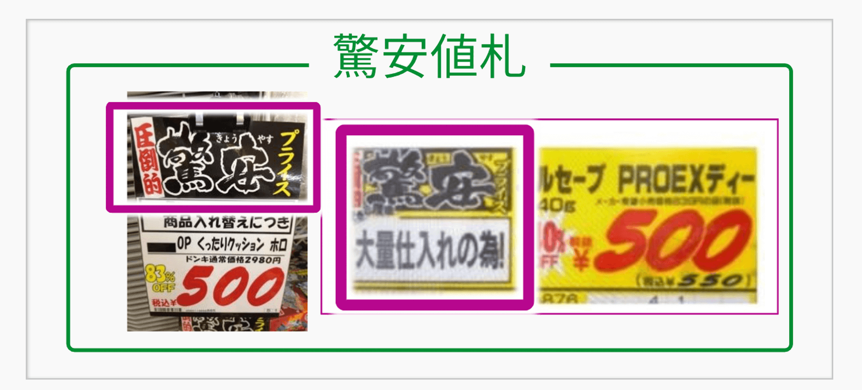 例えばドン・キホーテの場合「驚安」と書かれた値札がありますが、これは元の価格より大幅に値下げされていたり他店より安かったりする商品の目印。
