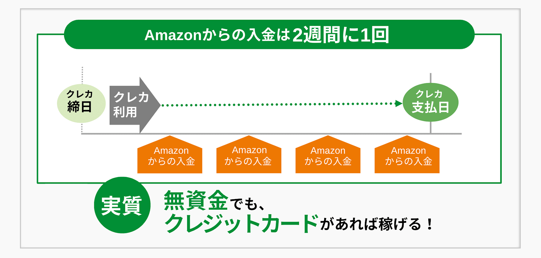 クレジットカードで仕入れた商品をAmazonで販売し売上金が振り込まれれば、