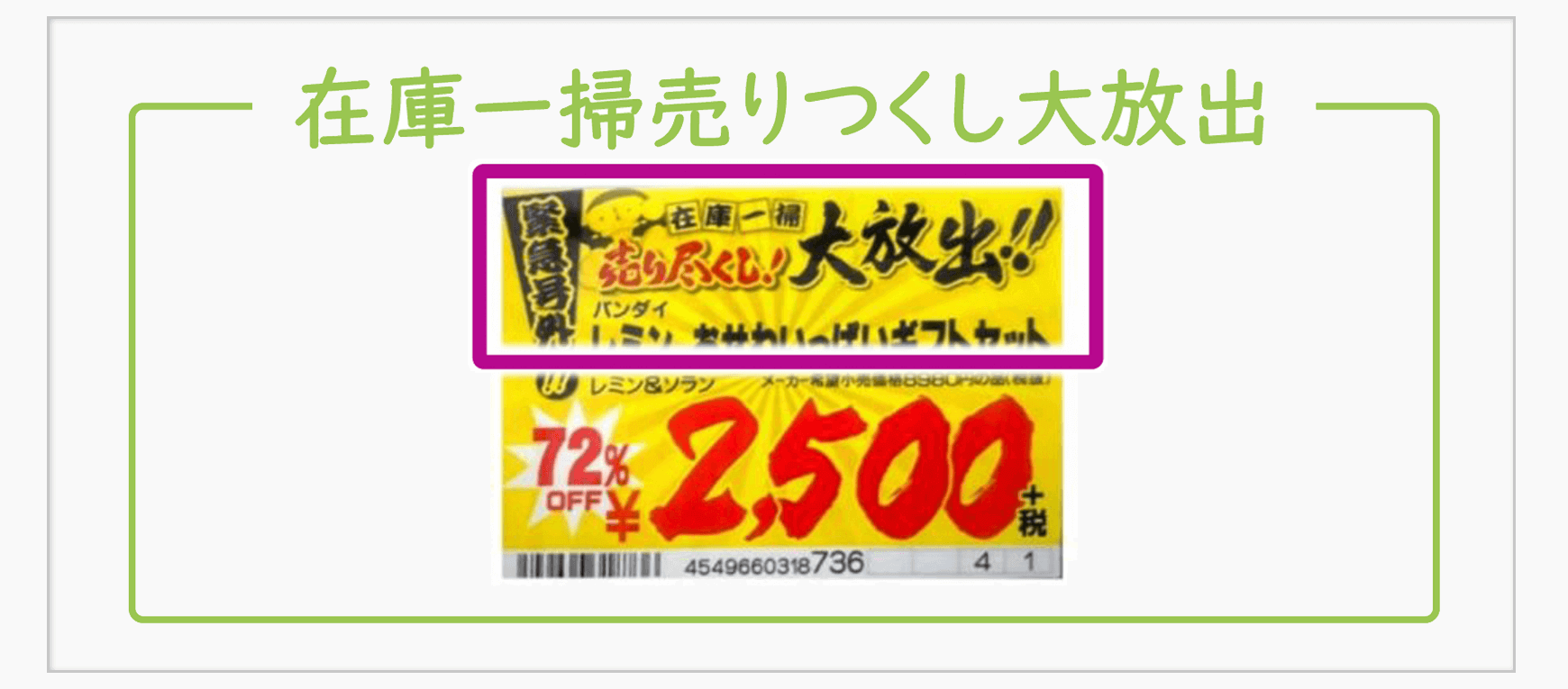 例えばドン・キホーテの場合「驚安」と書かれた値札がありますが、これは元の価格より大幅に値下げされていたり他店より安かったりする商品の目印。